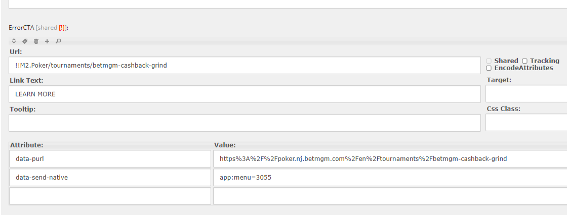ErrorCTAIn case the PAT ID is invalid this CTA will show up, either put the TourneyPage smartlink or PromoHub Smartlink. In the data-purl insert the clean URL (use https://www.urlencoder.org/).
