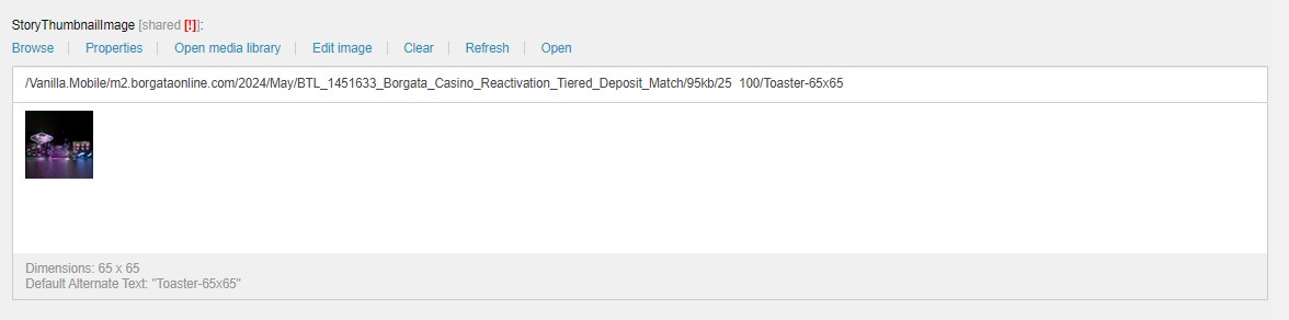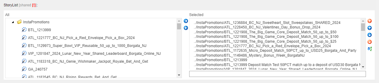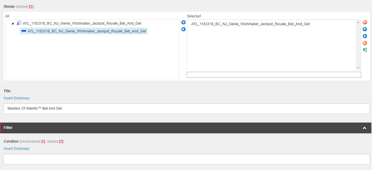 StoryThumbnailImagewith the "Toaster-65x65" or "Story-Toaster-65x65" media URL. - In Stories section, select your child component and push it to selected.