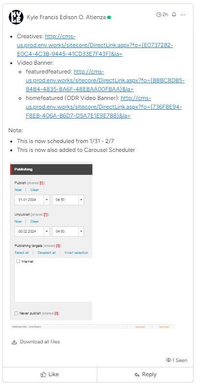 Do not forget to set the publishing dates for the video banner, the dates is often times mentioned in the Project Details tab of the Workfront ticket, Under the Description section it is mentioned.