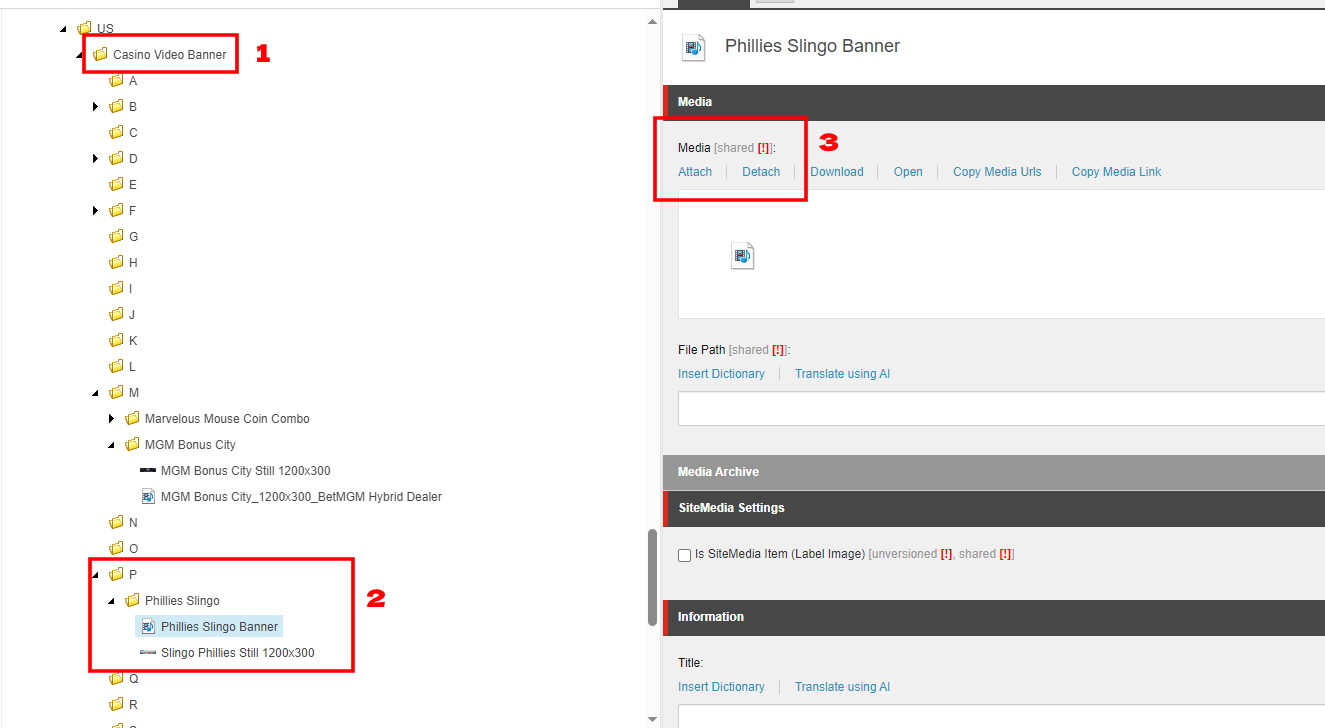 Detailssection, it will be under theCMS descriptionlabel. - Click both links to open each of the assets.