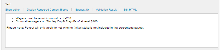 This can be edited on Content > PromoDetails > DefaultTermsToQualify.