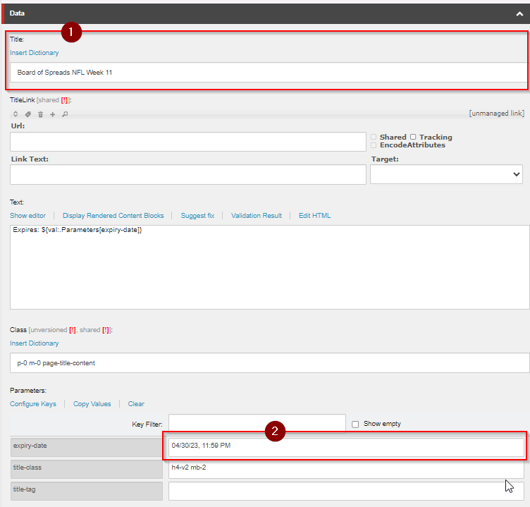 1. Update the Title for the appropriate label of the content.