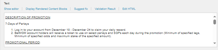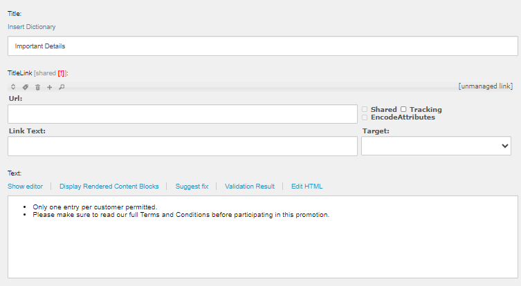 Use the content of the Promotion Description from your copy and place it on the Text field.
