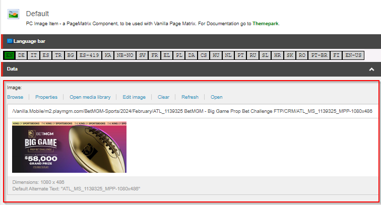 Use the image MPP-1080x486 and place its path on the Image field.
