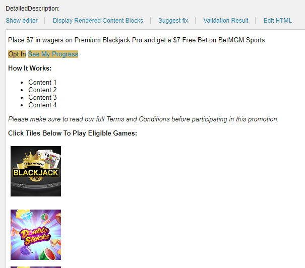 Place each content of the How To Participate in the T&Cs. Make sure they are enclosed in <ul> <li> tags. Refer to Documents Page for additional information.