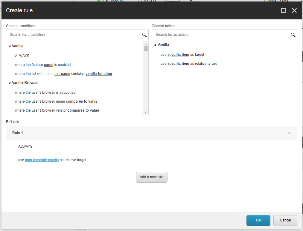 Click on "Edit rule", it opens the "Create Rule" box. Click on the highlighted text and it will open another box. Browse to your MPP's child and select it, then press OK. And Save.