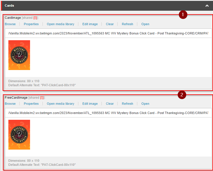 Compared to the other engagement promos, Click Card's PAT does not deviate much to the default PAT. The only additional field is the Cards section, where we will place the 2 cards asset for this promotion.