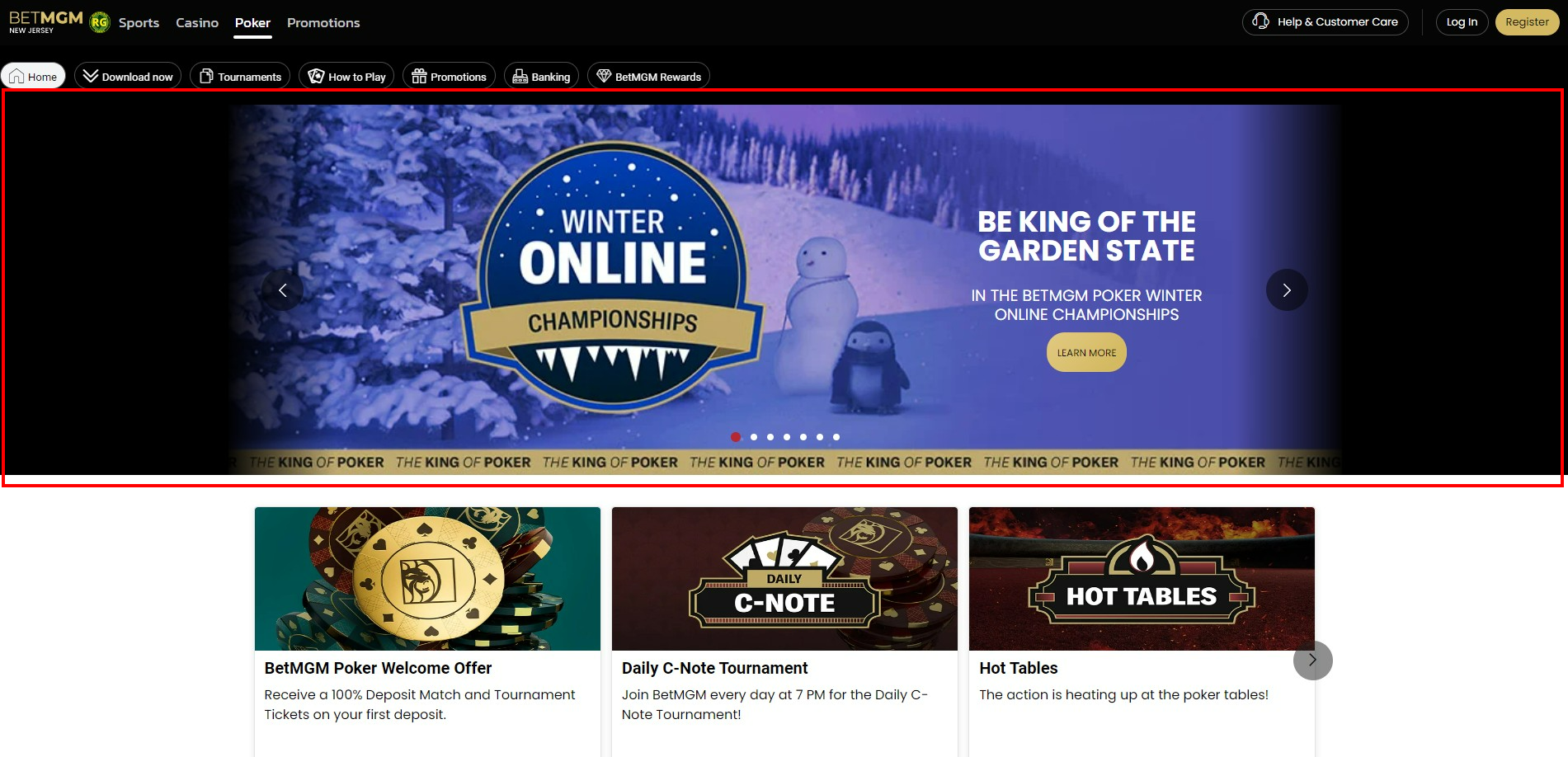 The Poker Carousel is the main attraction of the Poker Page. It shows all the latest promos, Public and Targetted, to the customers.