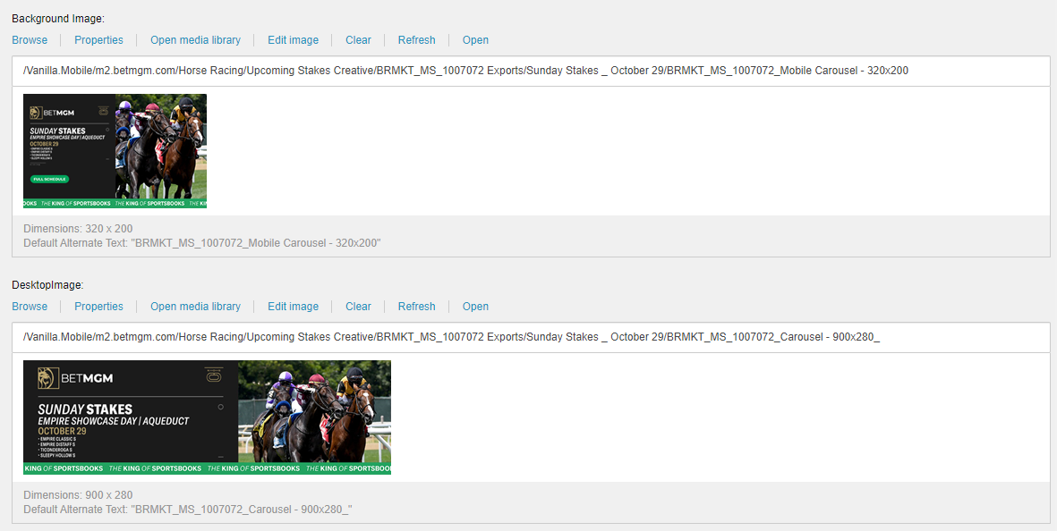 Update the Carousel by editing the Background Image and DesktopImage respectively.