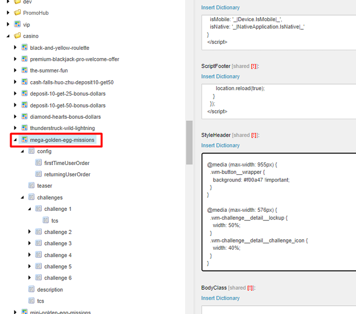 Content Editor > Sitecore > Content > Vanilla.Mobile > m2.state.brand.com > Promo > casino / sports folder